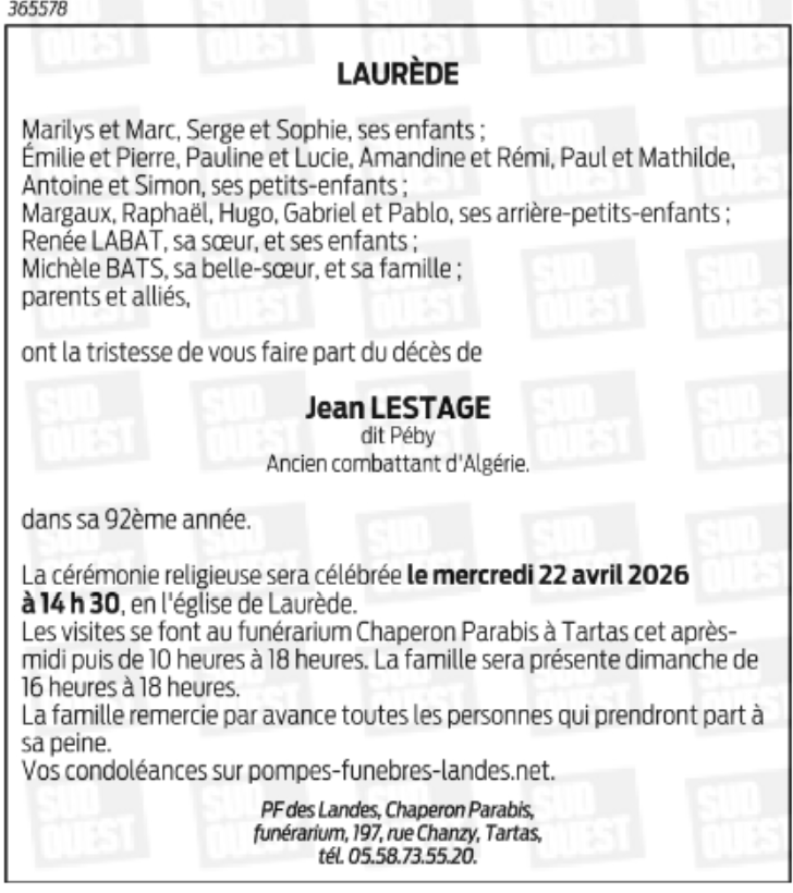 Né à Laurede (40250, France) le lundi 7 mai 1934