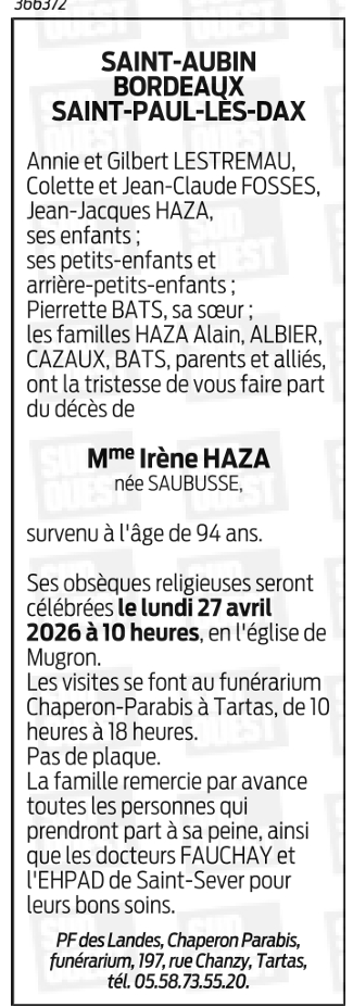 église Saint-Laurent de Mugron le lundi 27 avril à 10 heures