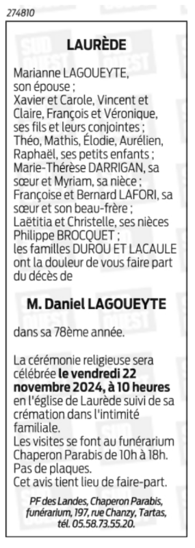 Epoux de Madame Marianne LAGOUEYTE