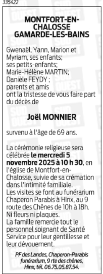 Décédé à Montfort-en-Chalosse (40380, France) le jeudi 30 octobre 2025 à l'âge de 69 ans