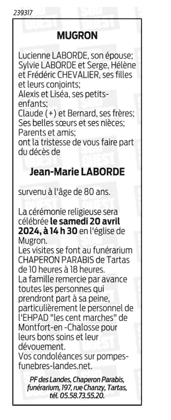 Epoux de Madame Lucienne LABORDE