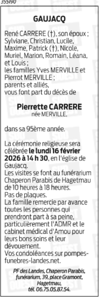 Décédée à Gaujacq (40330, France) le jeudi 12 février 2026 à l'âge de 94 ans