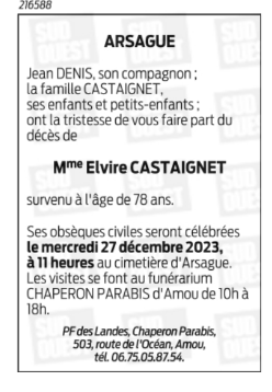 Décédée à Orthez (64300, France) le vendredi 22 décembre 2023 à l'âge de 77 ans