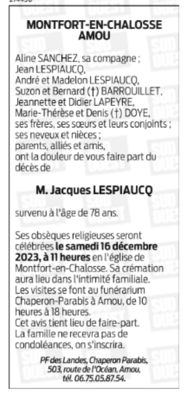 Monsieur Jacques LESPIAUCQ